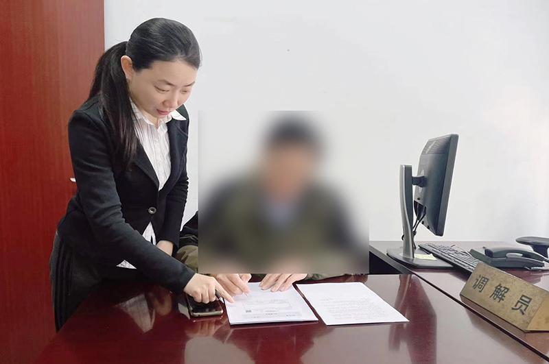 调解员张兰君协助当事人签署人民调解协议。受访单位供图
